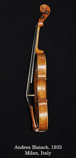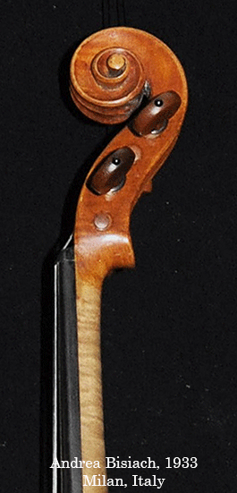An Italian violin bearing the label of Andrea Bisiach, 1933. Certified by Running & Son. Andrea worked in his father's ( Leandro Bisiach) shop in Milan, Italy where he became an expert in judging old master violins.