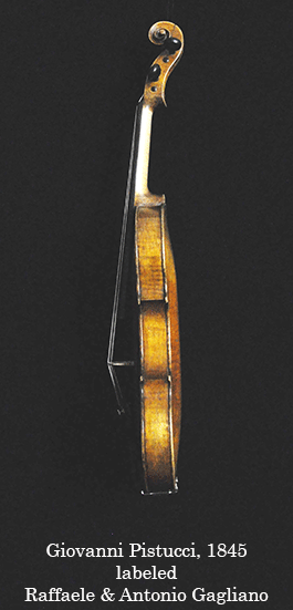 An Italian violin bearing the label Raffael & Antonio Gagliano by Giovanni Pistucci. Certified by Running & Son as by Giovanni Pistucci worked for the Gagliano brothers, where he most likely got Gagliano labels.