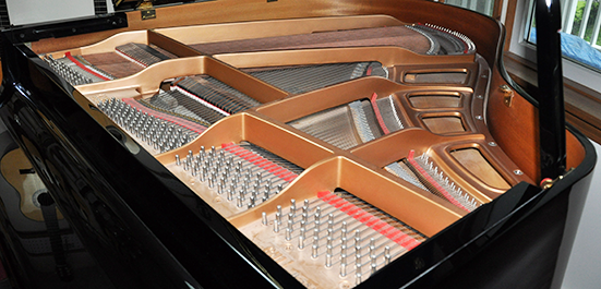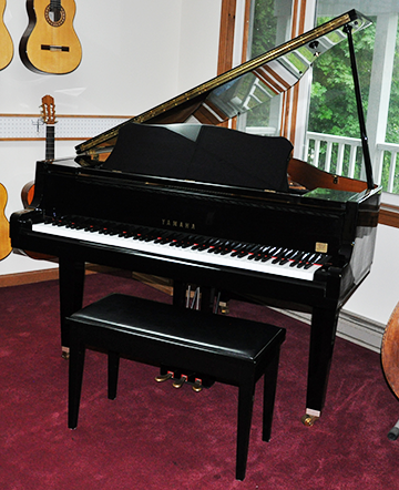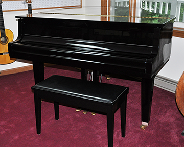 At 5'3" this baby grand piano is compact in stature. It's voice is full and clear and it has a resonant tone like larger models - but will it not overpower the ear in a small room. This baby grand has two lid positions, a permanent crown, solid spruce soundboard, full length ribs, extruded aluminum action rails, balanced action and spruce keys. Finished in polished ebony, it is an amazing and beautiful instrument in every respect.