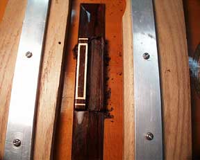 cracks, see Rubio repairs), glued with non-water bearing glue. But